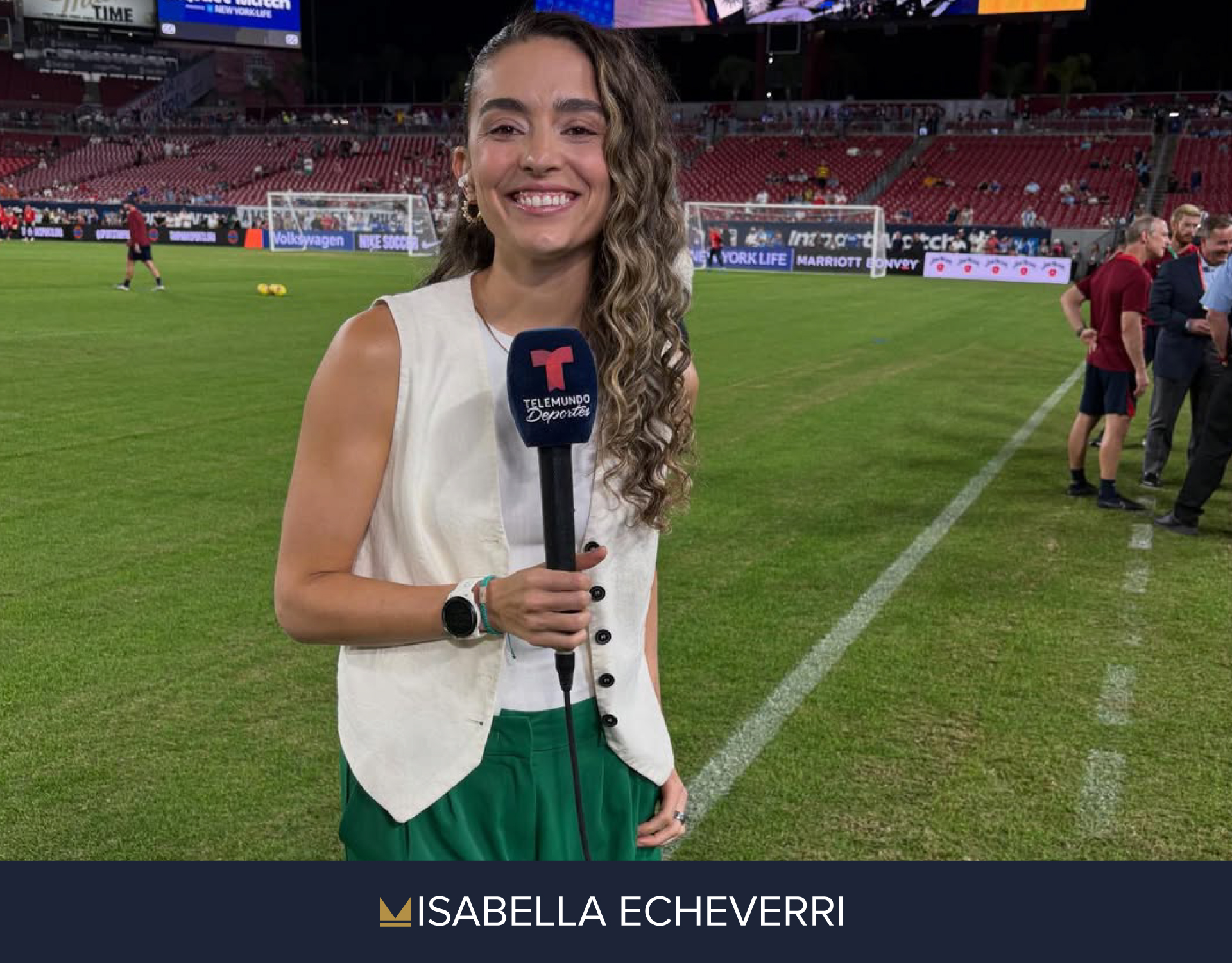 The first (former) footballer to win an Emmy Award with Telemundo for her Australia/New Zealand TV Coverage.